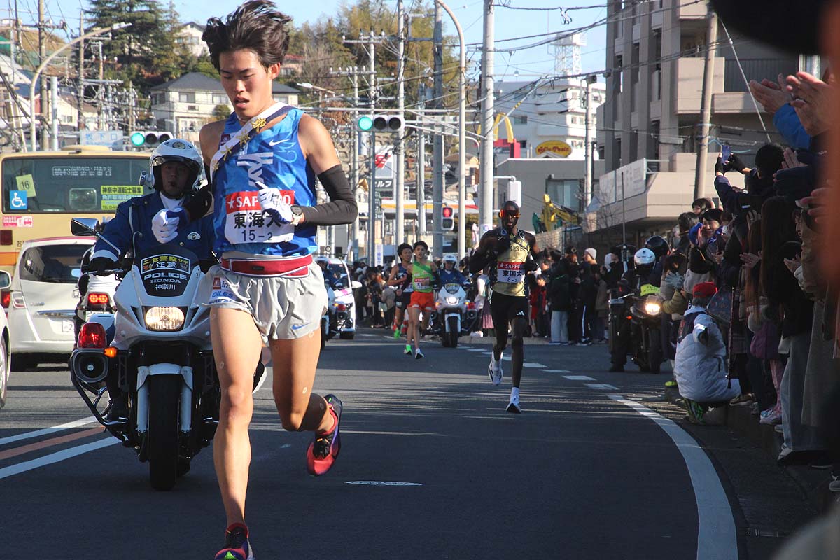 貞昌院に程近い権太坂を過ぎて下りきった2区18キロ地点での通過順です。